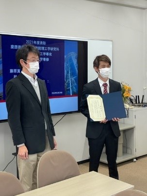 茂呂澤郁也君(M2)が総合デザイン工学専攻の優秀研究活動賞(修士)を受賞しました。おめでとう!