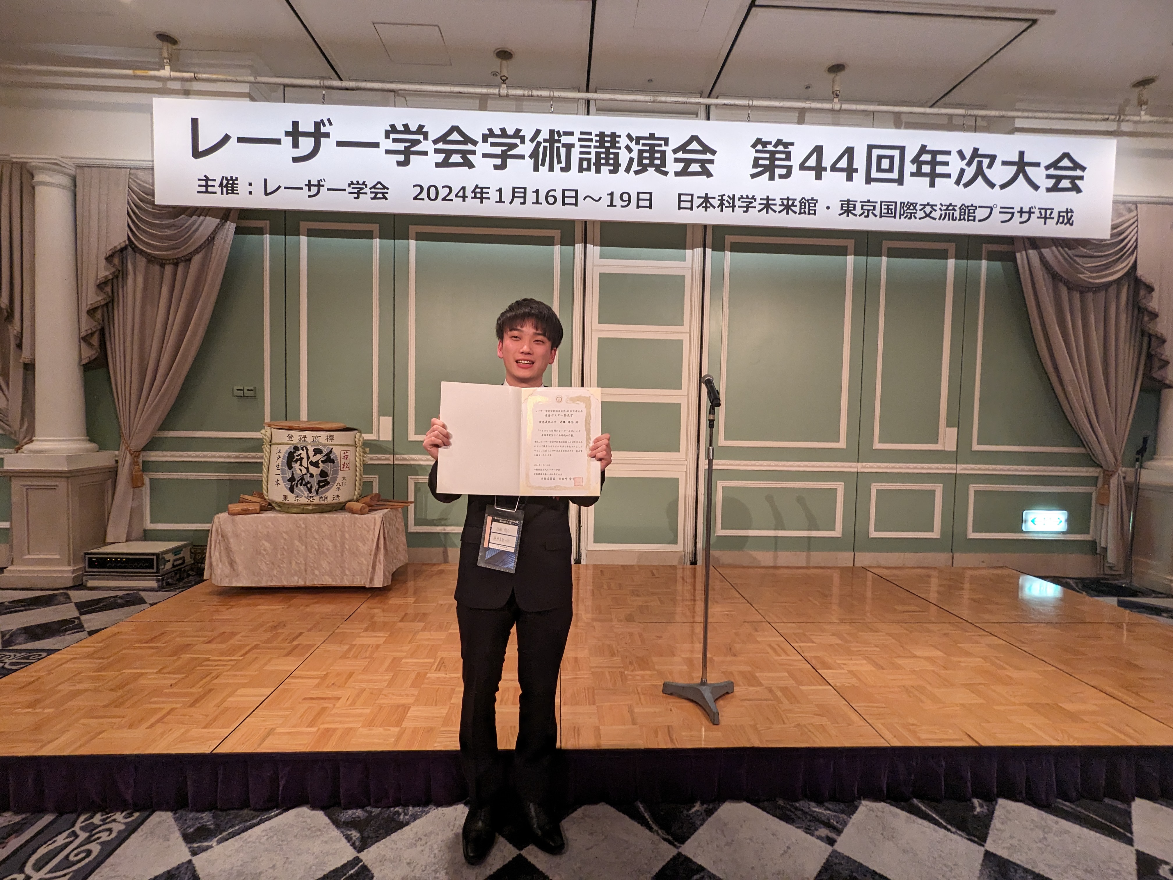 近藤君(M1)が1月に行われたレーザー学会第44回学術講演会年次大会において優秀ポスター発表賞を受賞しました。おめでとう!