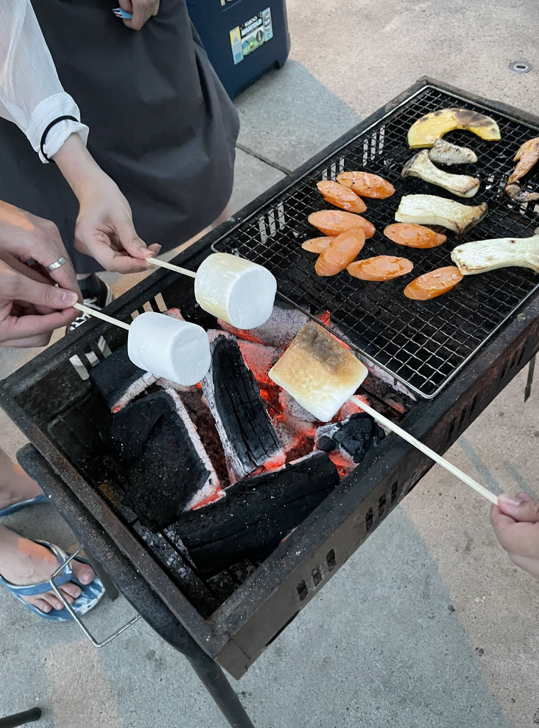 研究室合宿を行いました。写真はマシュマロのCarbonizationです。(美味しくいただきました。)